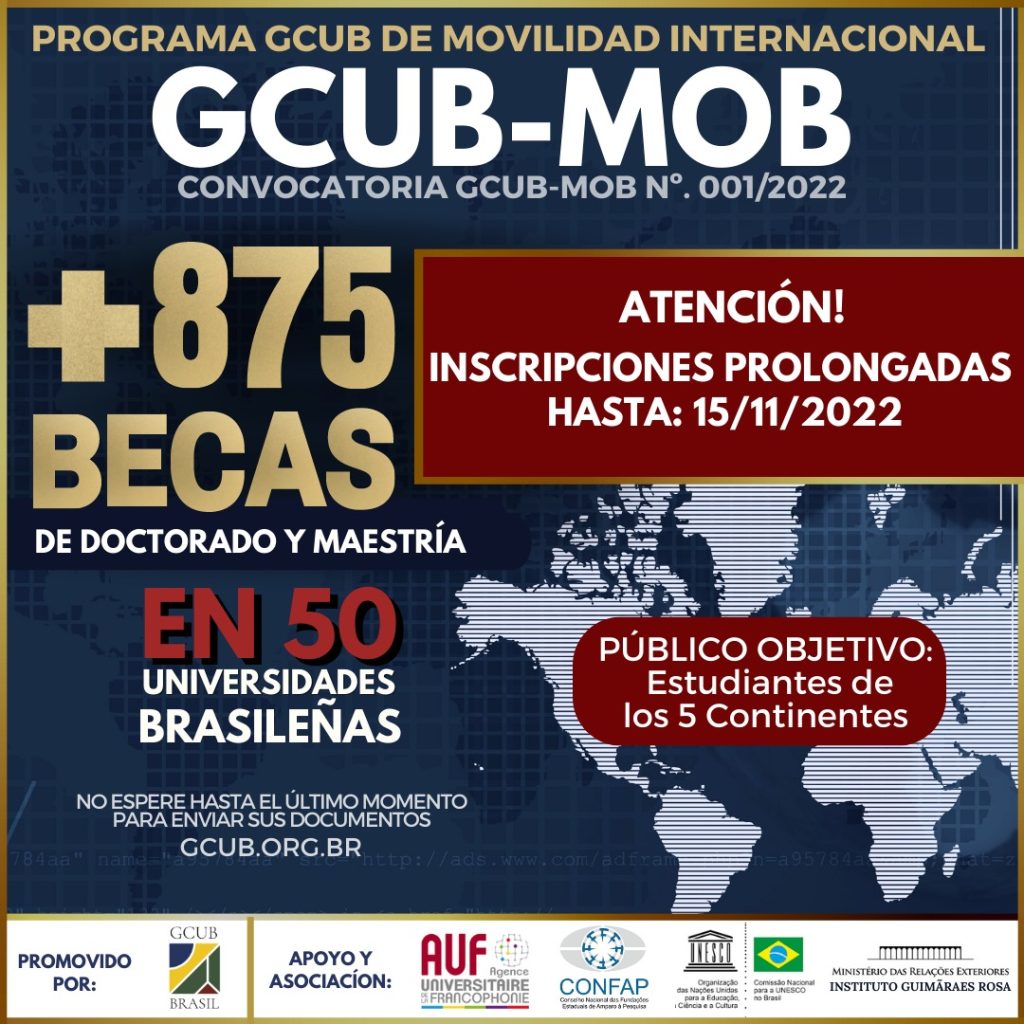 La Oficina de Relaciones Interinstitucionales de la Universidad Pedagógica Nacional de Colombia (ORI-UPN), invita a la comunidad universitaria consultar la oferta de Becas del El Programa GCUB de Movilidad Internacional – GCUB-Mob es promovido por el GCUB con el apoyo de la Agence International de la Francophonie – AUF, el Consejo Nacional de Fundaciones Estatales de Apoyo a la Investigación – CONFAP, la Comisión Nacional de la UNESCO y el Instituto Guimarães Rosa del Ministerio de Relaciones Exteriores del Brasil.