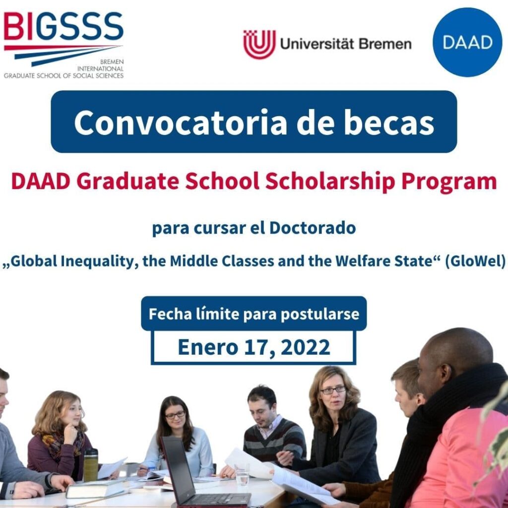 La Oficina de Relaciones Interinstitucionales – ORI, invita a la comunidad académica a participar en el programa de becas de Doctorado GloWel – “Global Inequality, the Middle Classes and the Welfare State”, ofrecido por el BIGSSS-Bremen International Graduate School of Social Sciences.