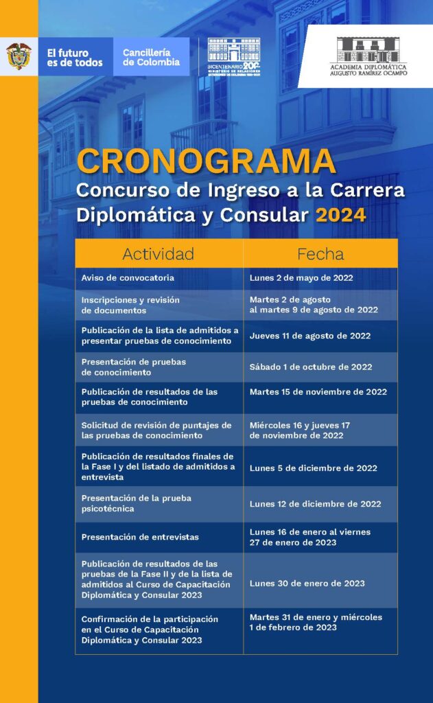 La Oficina de Relaciones Interinstitucionales (ORI-UPN) informa a funcionarios, egresados y docentes que La Academia Diplomática, mediante resolución 2861 del 29 de abril de 2022 convoca al Concurso de Ingreso a la Carrera Diplomática y Consular para el año 2024.