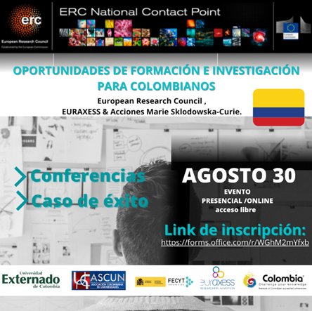La Oficina de Relaciones Interinstitucionales de la Universidad Pedagógica Nacional de Colombia (ORI-UPN) invita a la comunidad académica a una sesión informativa centrada en «Oportunidades de formación e investigación para Colombianos en Europa» liderada por La Universidad Externado de Colombia como NCP (National Contact Point) del European Research Council (ERC) junto a EURAXESS LATAM, con el apoyo del Punto Nacional de Contacto (NCP) en Marie Sklodowska-Curie (MSCA) de España, el Ministerio de Ciencia e Innovación del Gobierno de España -FECYT- y en colaboración con la Red Challenge Your Knowledge -CCYK- y la Asociación Colombiana de Universidades -ASCUN-