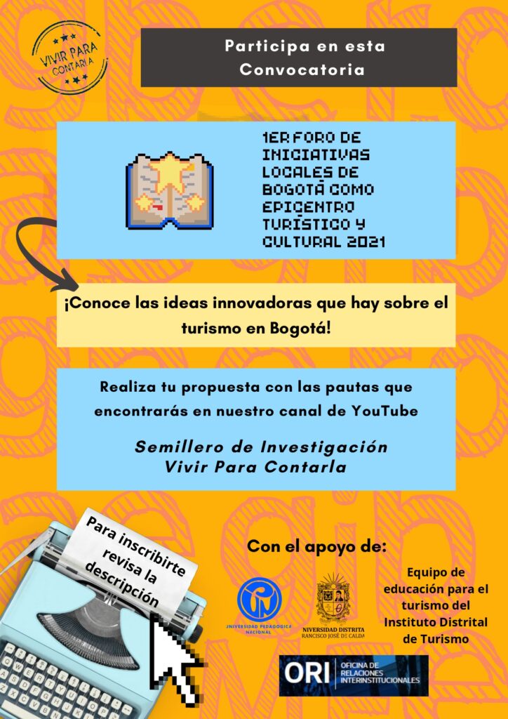 Te invitamos a hacer parte del Primer Foro de iniciativas locales de Bogotá como Epicentro Turístico y Cultural 2021 en donde estudiantes y docentes de educación superior y del programa Colegios Amigos del Turismo, podrán participar proponiendo ideas creativas e innovadoras para fortalecer a Bogotá como un epicentro turístico y cultural.