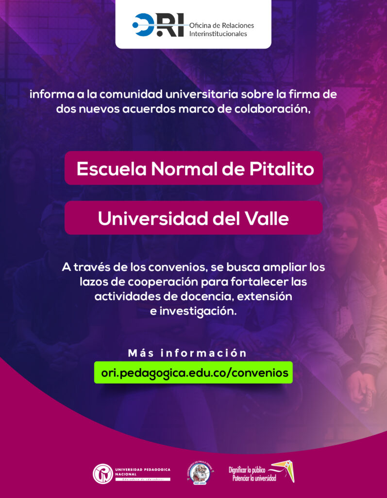 La Oficina de Relaciones Interinstitucionales informa a la comunidad universitaria sobre la firma de dos nuevos acuerdos marco de colaboración, el primero con Escuela Normal de Pitalito y el segundo con la Universidad del Valle.