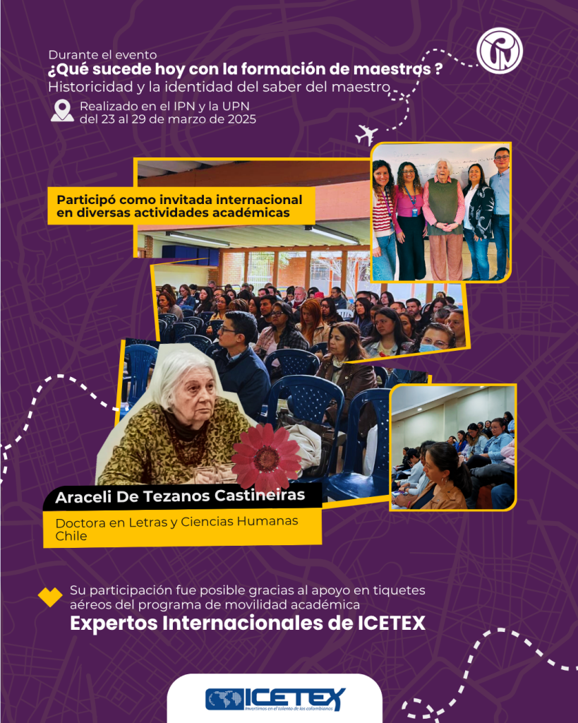 Su participación fue posible gracias al apoyo del programa Expertos Internacionales de ICETEX, en el marco de la estrategia de movilidad académica de la Universidad. Esta colaboración permitió profundizar la línea de formación docente e investigación educativa del IPN y avanzar en el diseño de procesos cooperativos interinstitucionales, orientados al fortalecimiento del diálogo académico entre Chile y Colombia.