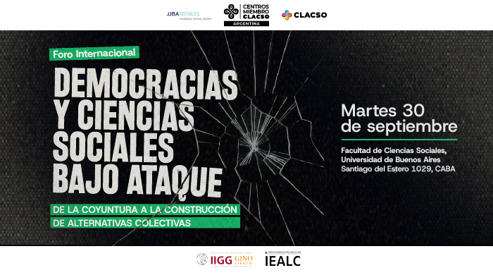 La Oficina de Relaciones Interinstitucionales – ORI invita a toda la comunidad universitaria a conocer e inscribirse en el Foro Internacional “Democracias y Ciencias Sociales bajo ataque. De la coyuntura a la construcción de alternativas colectivas”, organizado por CLACSO el próximo 30 de septiembre de 2025 en Buenos Aires, Argentina, en articulación con la Facultad de Ciencias Sociales de la UBA, el IIGG, el IEALC y los centros miembro de Argentina.