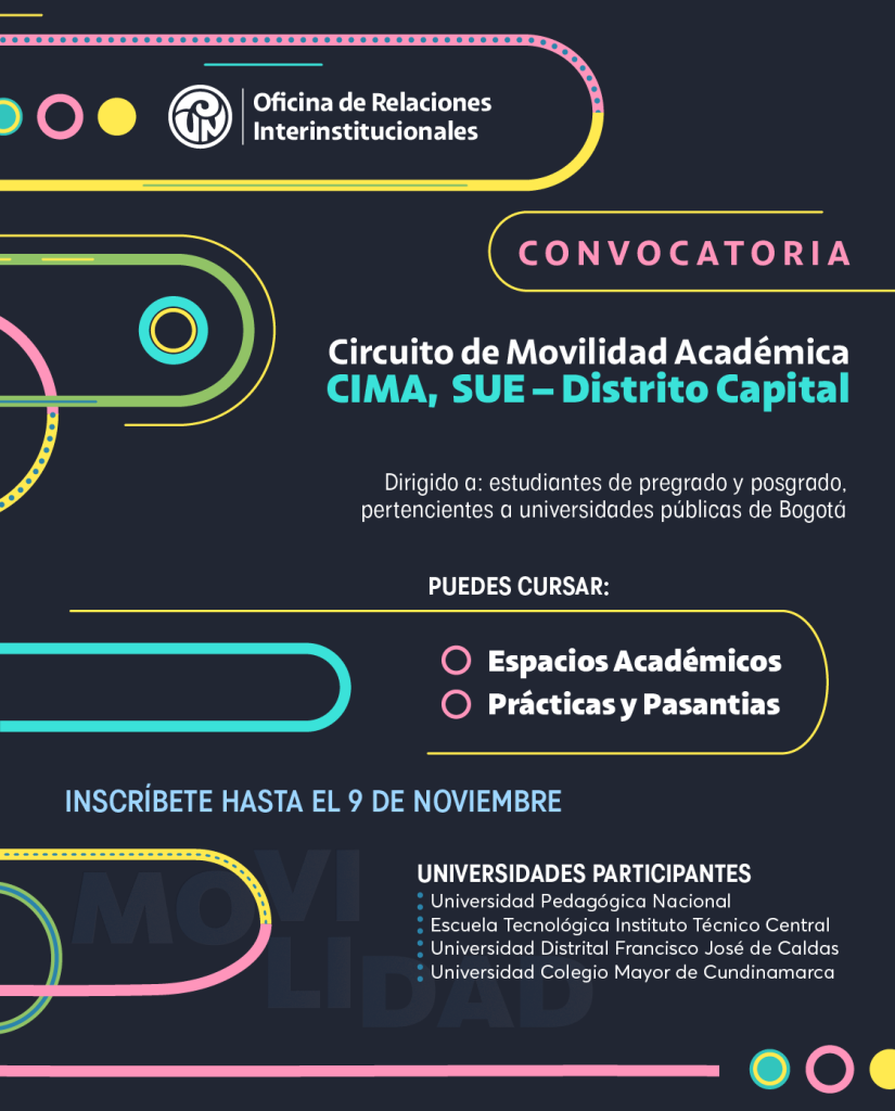 La Universidad Pedagógica Nacional (UPN), a través de la Oficina de Relaciones Interinstitucionales (ORI), abre dos convocatorias regulares por año para postular a movilidades académicas de un semestre completo en instituciones extranjeras aliadas. Estas convocatorias se publican en los siguientes periodos: