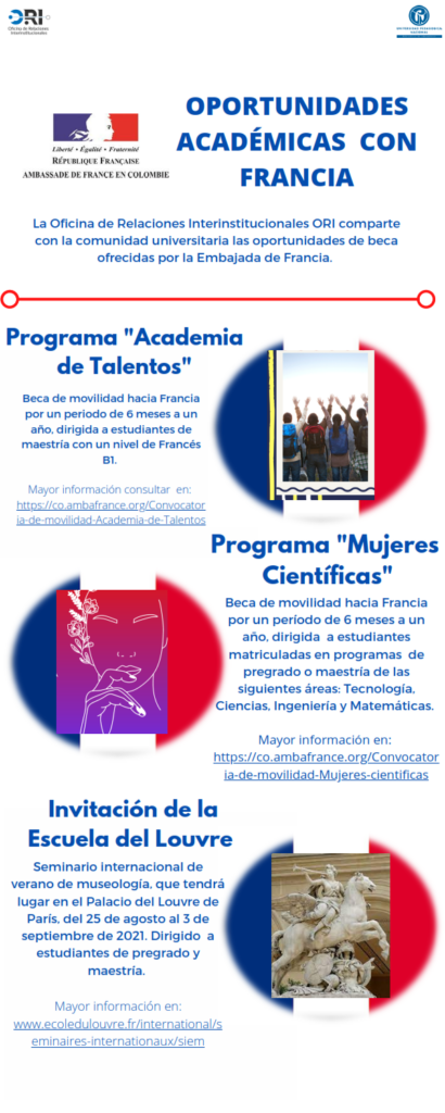 Programa «Academia de Talentos»: https://co.ambafrance.org/Convocatoria-de-movilidad-Academia-de-Talentos
