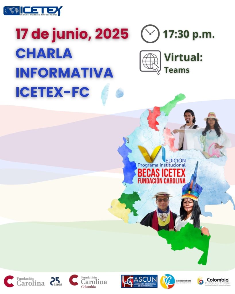 Esta iniciativa es promovida por la Asociación Colombiana de Universidades – ASCUN, su Red Colombiana para la Internacionalización (RCI), la Asociación Colombia Challenge Your Knowledge (CCYK) y la Fundación Carolina, quienes ofrecerán una charla de socialización para presentar los detalles de esta importante convocatoria.