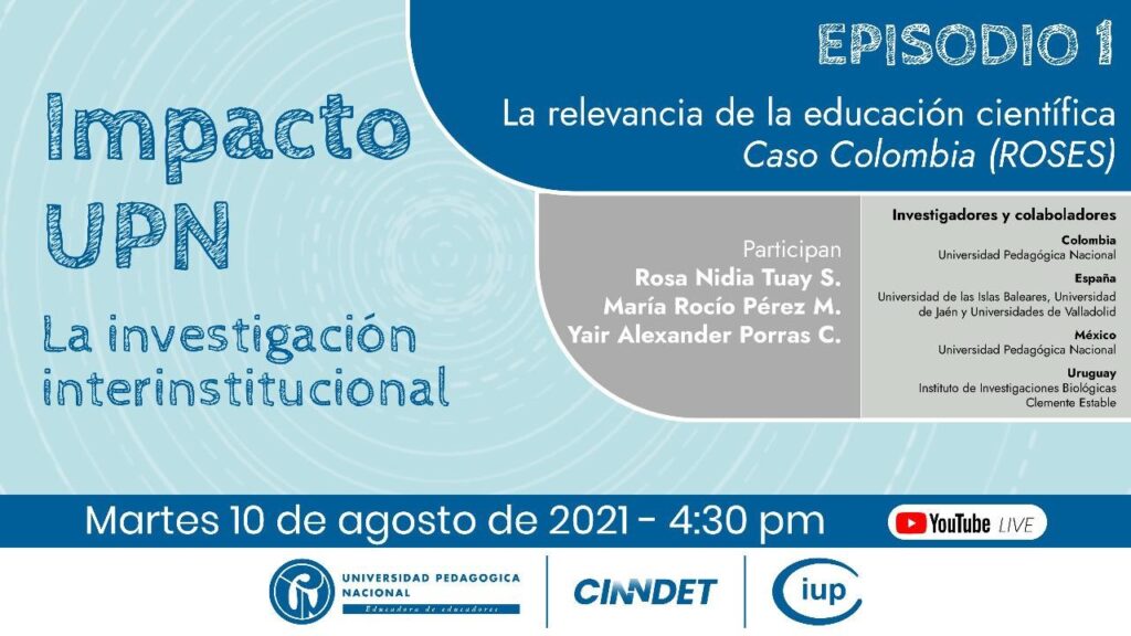 En este primer episodio de los seis propuestos se titula «La relevancia de la educación científica. Caso Colombia (ROSES)» y contará con la participación de Rosa Nidia Tuay, María Rocío Pérez y Yair Alexander Porras.