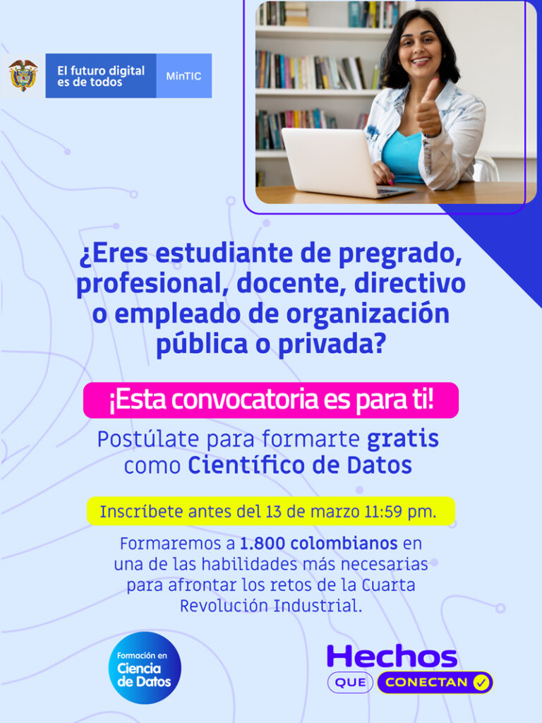 La convocatoria cubre el 100% del costo de la formación para los beneficiarios seleccionados. Los interesados en participar deben contar con habilidades y competencias en temas como la programación, análisis de la información, estadística, matemática e inglés entre otras, las cuales serán evaluadas mediante una prueba técnica realizada por parte del operador, que permitirá constituir el banco de elegibles.