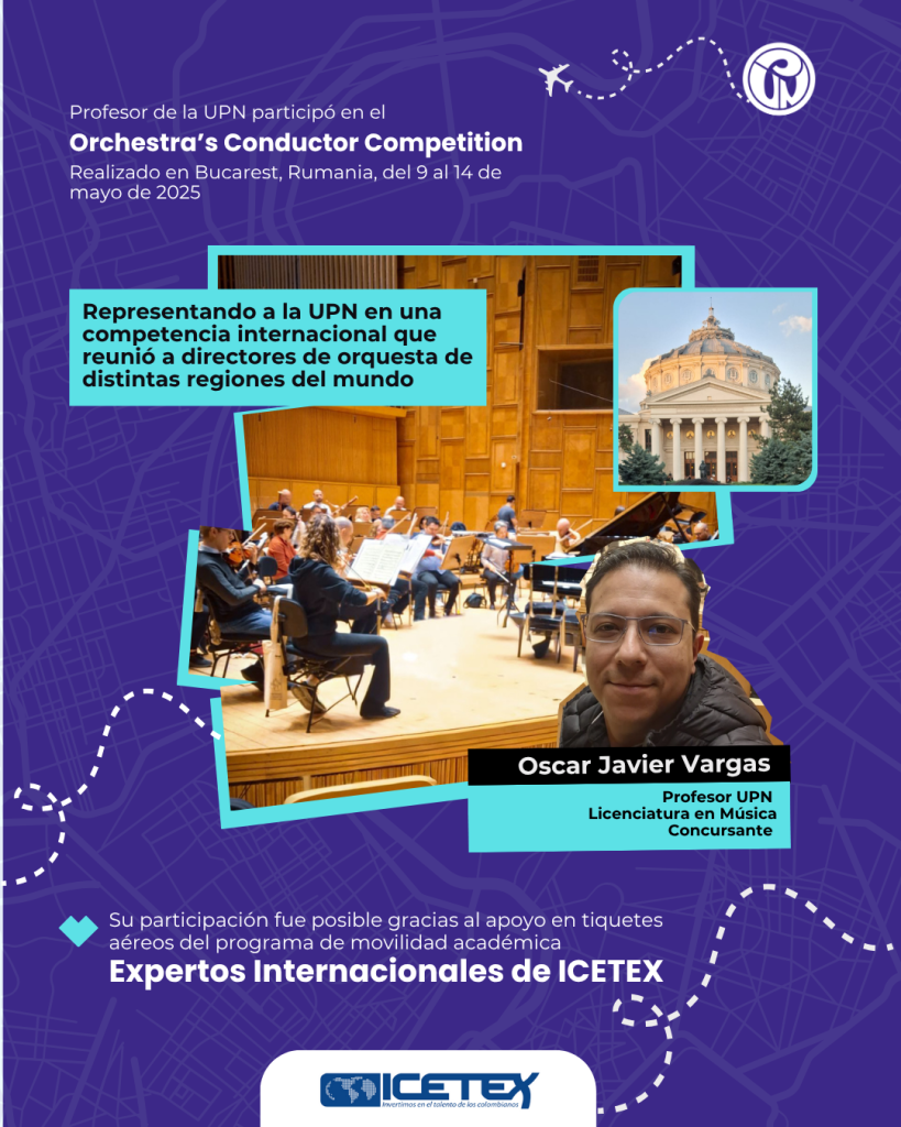 En el marco de la estrategia de internacionalización de la Facultad de Bellas Artes, el profesor Óscar Javier Vargas Orbegozo, de la Licenciatura en Música de la Universidad Pedagógica Nacional, participó en el Orchestra’s Conductor Competition, realizado en Bucarest, Rumania, del 9 al 14 de mayo de 2025, organizado por la Association Geros.